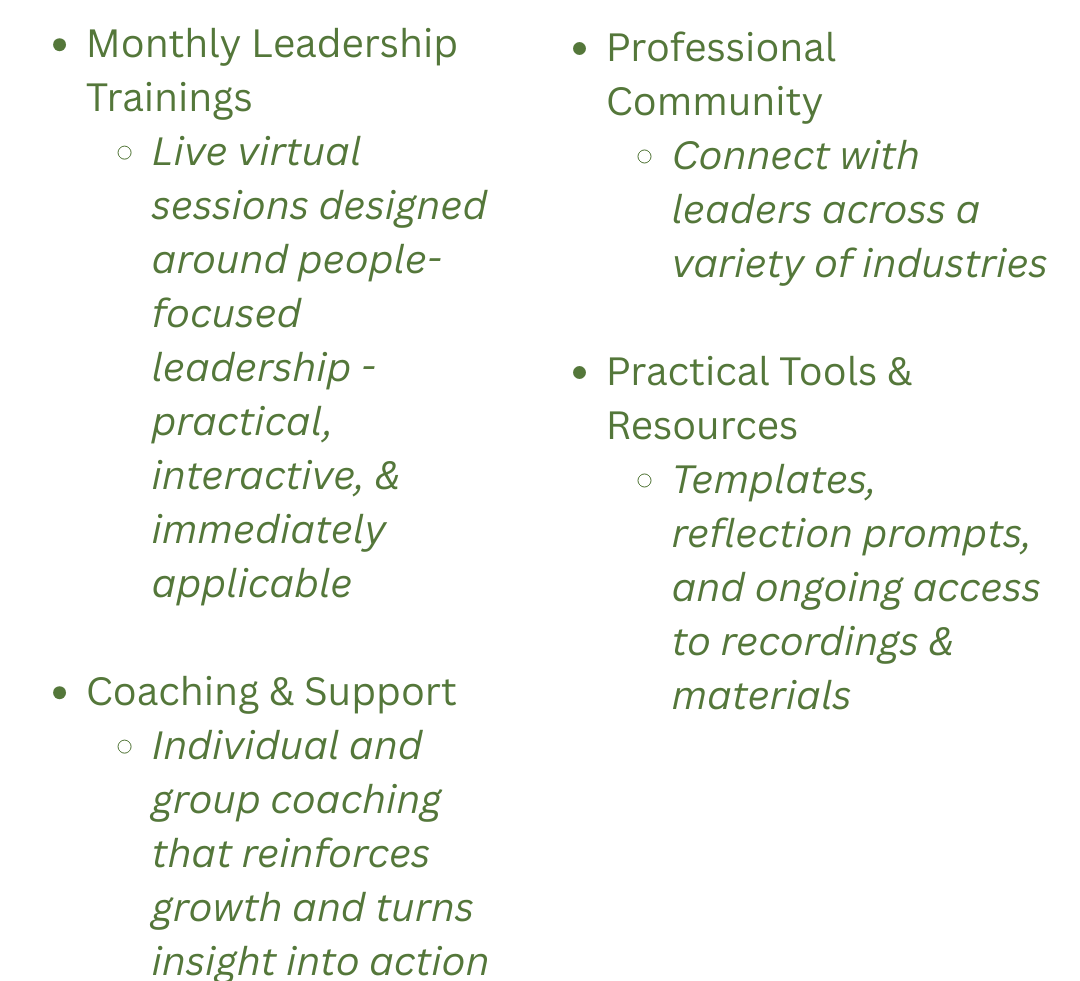 A year-long virtual leadership academy for emerging, evolving, and executive leaders who want to grow with intention.
